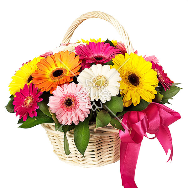 Радужный сон - корзина с разноцветными герберами
